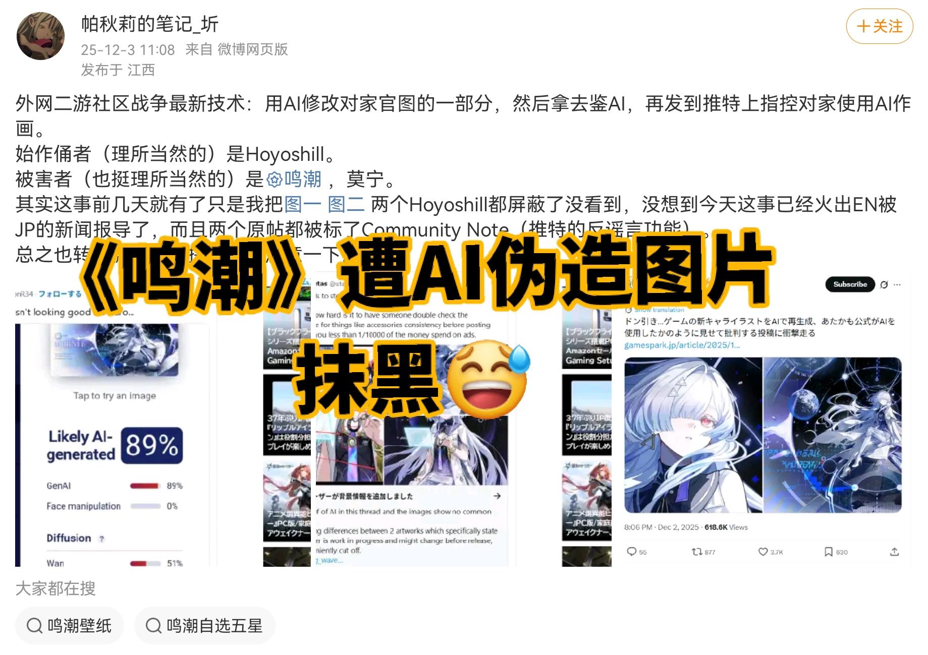 伪造ai作图抹黑鸣潮,这下真丢脸丢到国外了