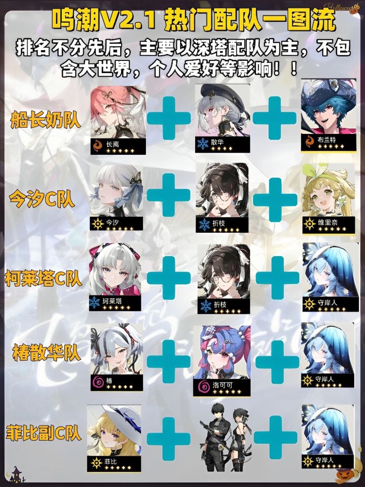 💞宝子们,2.1下半深塔配队推荐来啦,大家可以根据自身角色配置进行搭配~2.1下半更新内容:1、新增船长布兰特,定位热熔奶C,当前版本有专武可以主C无专武可以副C,与长离配队,火队预计在赞妮完成配置。注意:✅️目前船长布兰特属于可抽可不抽,如果你有长离星声不足以抽布兰特专武,就可以只抽布兰特就行。(星声够可涝专武)。✅️如果你是一位只看大的玩家建议跳过布兰特猛抽坎特蕾拉(目前可能是湮灭奶