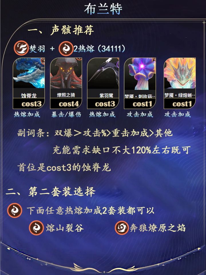 鸣潮嘉贝莉娜上线啦,一发出大贝姐的你快过来学习如何培养她了!本篇攻略轩儿Xuaner给大家带来鸣潮嘉贝莉娜V2.7版本的最新全方位养成思路~-----------------------------------------① 嘉贝莉娜定位热熔主C。当前版本0链嘉贝莉娜逆境深塔T0.5,冥歌海墟T1。② 嘉贝莉娜声骸套装推荐优先焚羽猎魔之影三件套搭配奔狼燎原之焰/熔山裂谷两件套。如果没有好的声