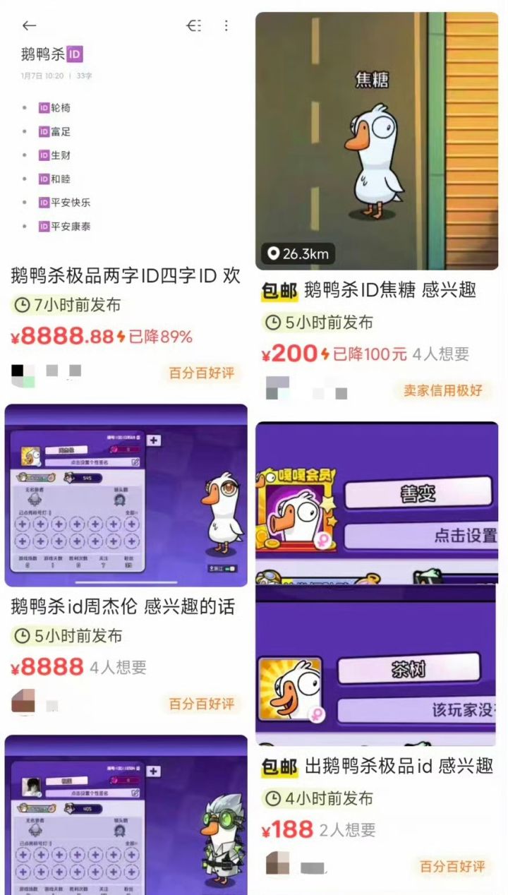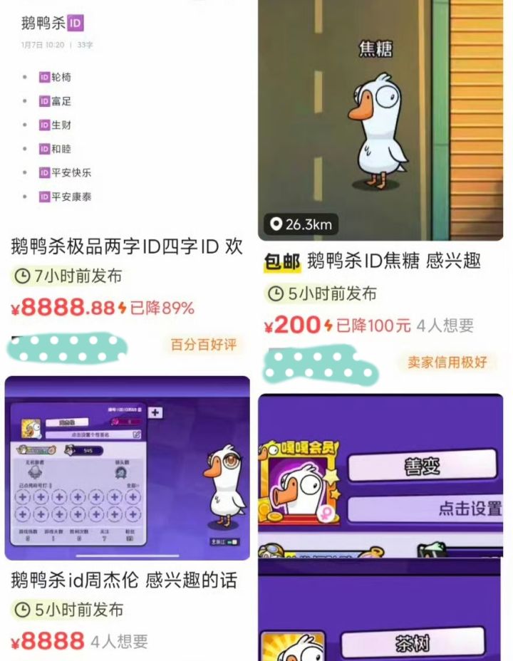 8888元一个ID!《鹅鸭杀》ID被挂二手平台售卖,官方回应高价交易