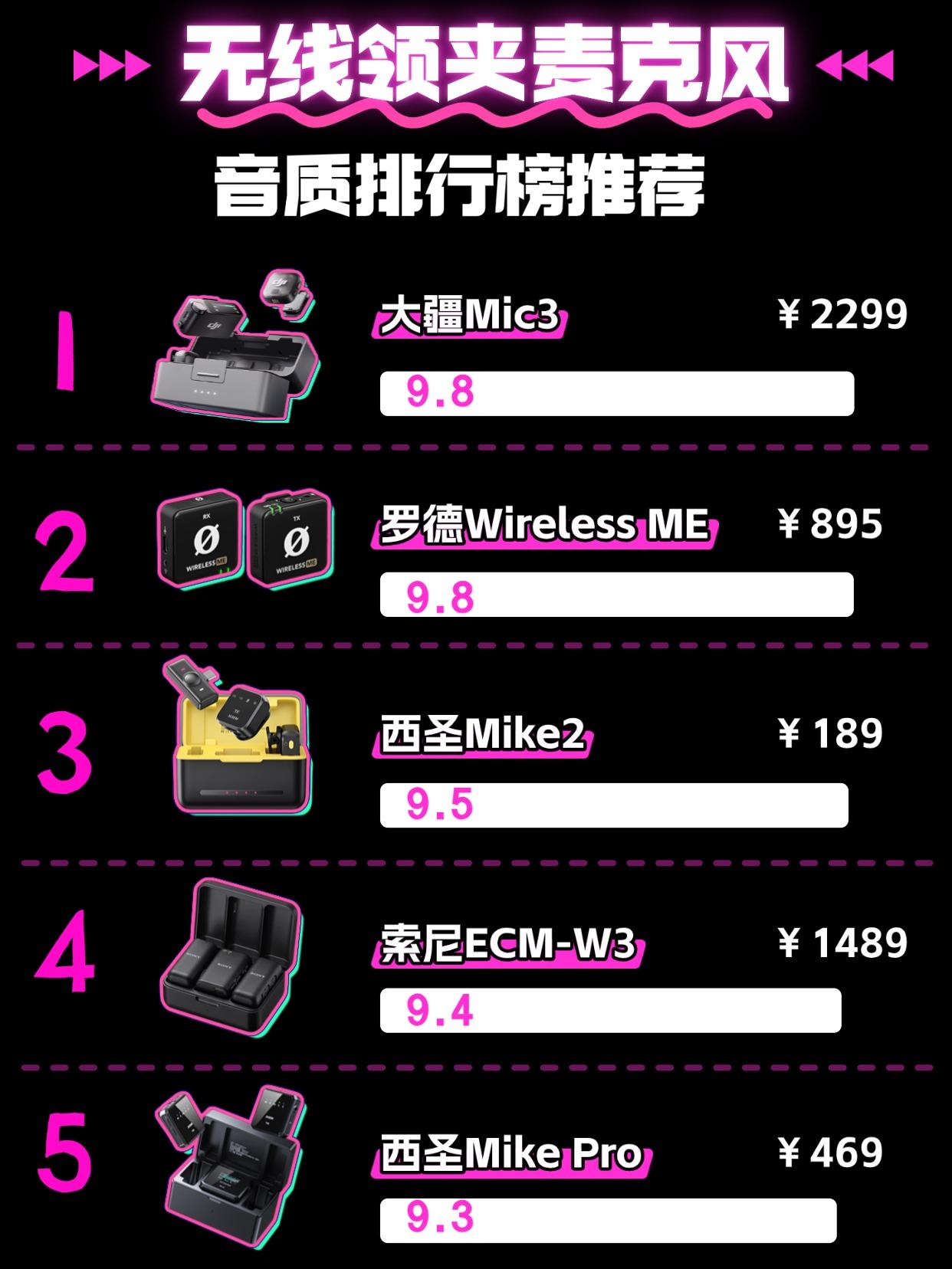 中高端领夹麦克风性价比排行:猛犸仅排第四,第一名意料之中