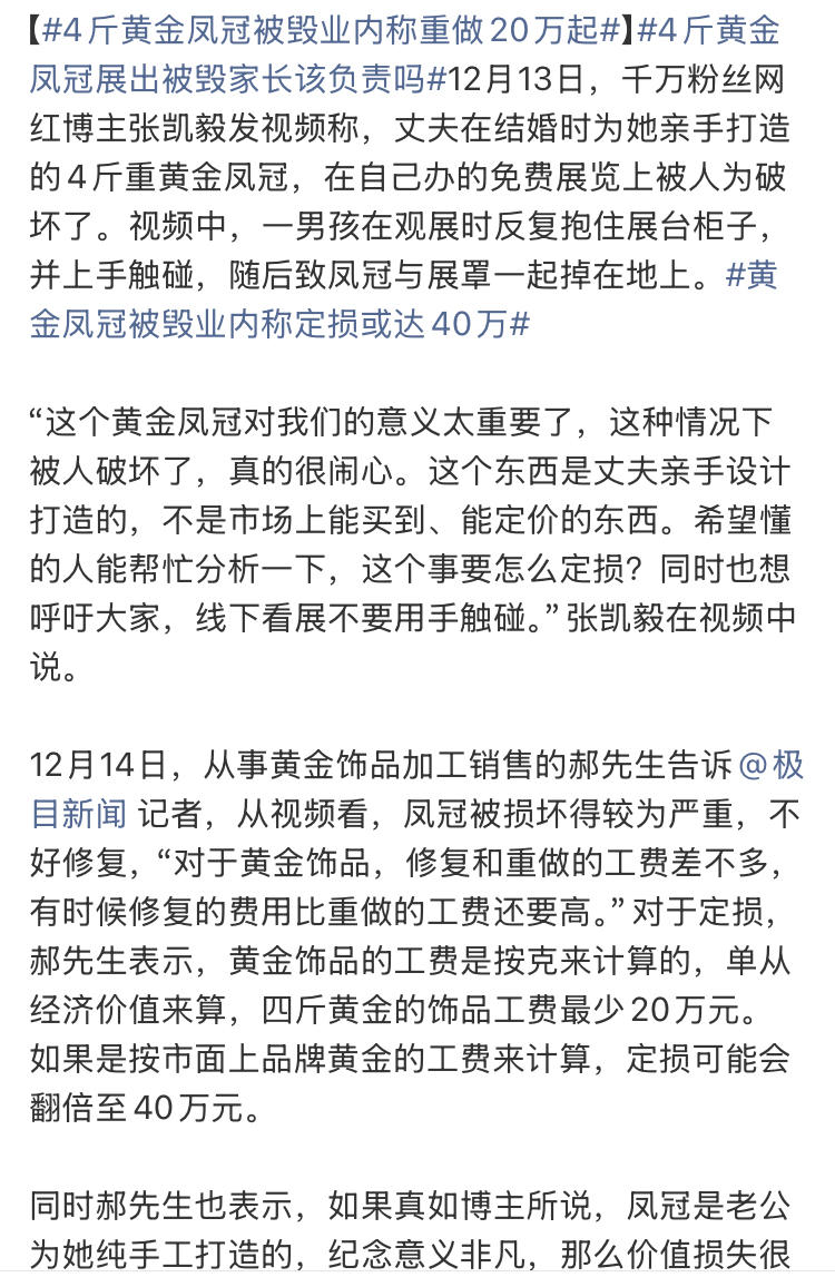 每次看到这种熊孩子搞破坏的消息都气的不行,真的,好好管管孩子吧,虽然没法追究熊孩子的刑事责任,但是作为监护人这种失责承担民事侵权赔偿肯定是跑不了的了,就是赔钱容易,但这种纪念意义的东西被破坏肯定也相当影响心情了吧,这可不是单纯赔钱就能弥补的啊!#生活杂谈 #热点事件 #黄金