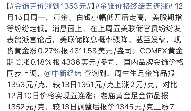 只能说真的好可怕,黄金已经涨到看不懂的样子了,大品牌的要一千五一克,买个手链或者戒指就要一万多了,还记得当年几百块一克的时候,后悔当时没多买点,现在涨的这么高已经不打算买了。#生活杂谈 #热点事件 #黄金
