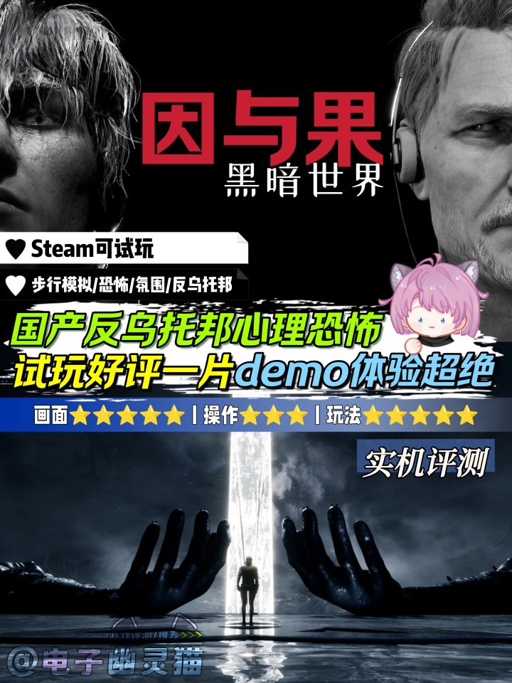 🎮游戏名🔺黑暗世界:因与果🎮游戏类型🔺反乌托邦/恐怖/氛围🎮平台🔺Steam(已开启试玩,可以去steam下载试玩版,试玩时长大约40-50分钟)划重点,试玩是10月14日到10月22日结束,所以想体验的趁早哇~不然就只能去看猫猫的实况视频了,哎嘿~——⭕先总结一下,试玩版里的部分内容,让我有一种回到层层恐惧1的感觉,但《因与果》整体氛围渲染,还是非常有意思的,真的会有精神污染的感觉,以
