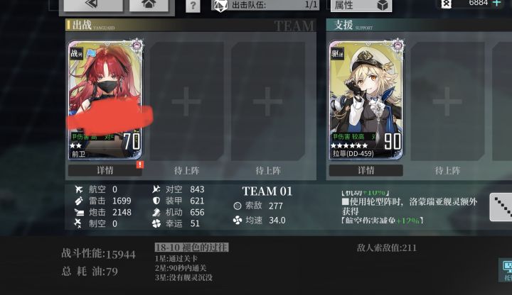【前卫3星80级】如图。 #z16 前卫升到3星80级后,后排上个z16就能稳刷18-10了再编辑:发现概率超时无法满星评价,前卫s1技能吃对空,放弃装填,防空炮换两个对空就稳了,稳定时间95~100秒过关。如果你z16婚了来了8槽位,那当然更简单不用我这么麻烦。——以上25.6.30编辑新增——【前卫2星70级】唯一的缺点大拉菲抢mvp,油耗79。(编辑补充:有可能超时导致2星)黑暗