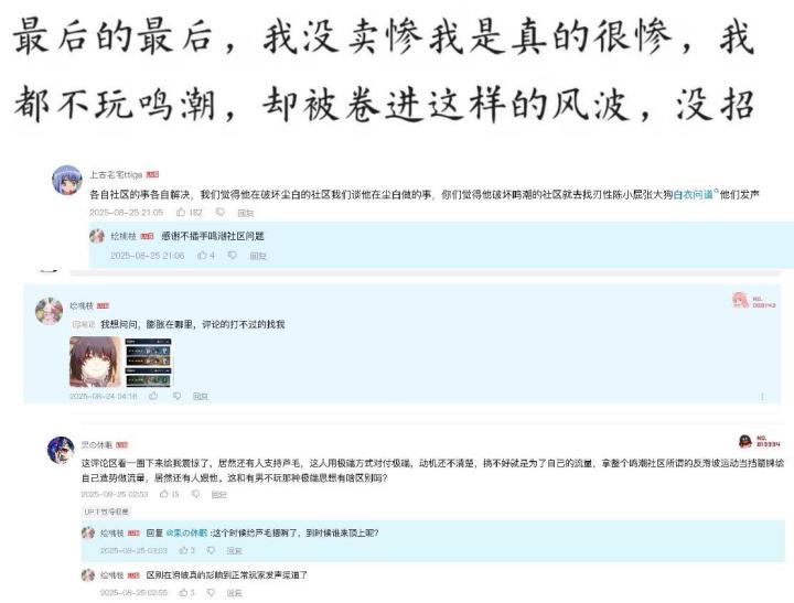 风波再次升级——游戏配音演员的个人言行与角色形象的边界再次引发讨论Noticia | 文:yeah, but no | 08 sep 20252025年9月8日下午《鸣潮》官方发布公告宣布:经项目组决策,将在后续版本中更换角色漂泊者(女)的中文配音演员。至此,一场由配音演员龟娘个人言行引发的、持续一年多的争议事件,终于以官方的果断处理暂告段落。>>>>事件回顾——从“MC”争议到跨