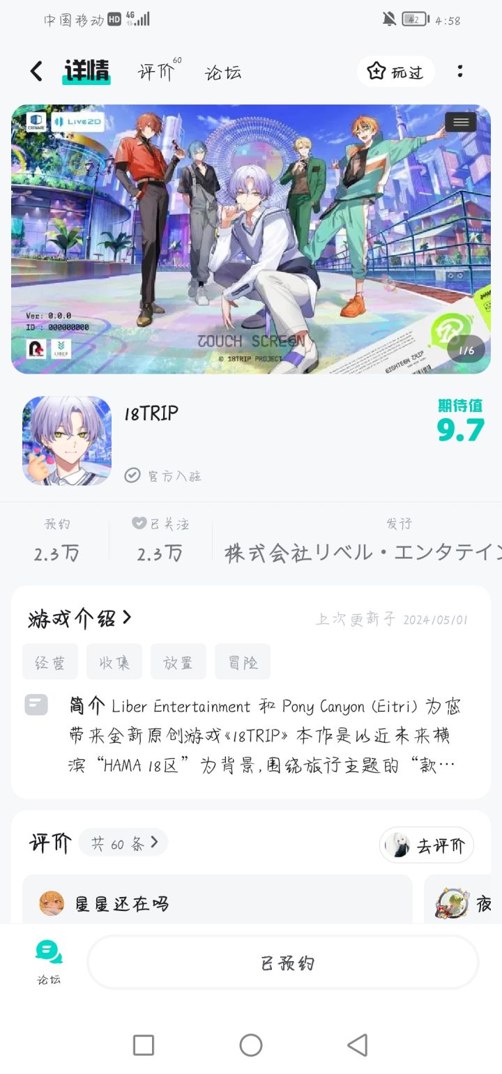 姐妹们!最新的女性向游戏《18TRIP》将于5月23号上线! 今天更是放出了事前预约奖励! 让我们先来一同纠结一下到底要跟谁“耍朋友”呢! 第一位心动男嘉宾菠萝换他为 眼神忧郁的“富家少爷”(网剧照进现实!富家少爷爱上我!!!!) 第二位心动男嘉宾菠萝愿称他为白毛体育生!(哥哥不会是剑道社社长吧~) 第三位心动男嘉宾这一定就是“腹黑大狗狗”!!!! 第四位心动男嘉宾这不就是高中时期的“奶狗