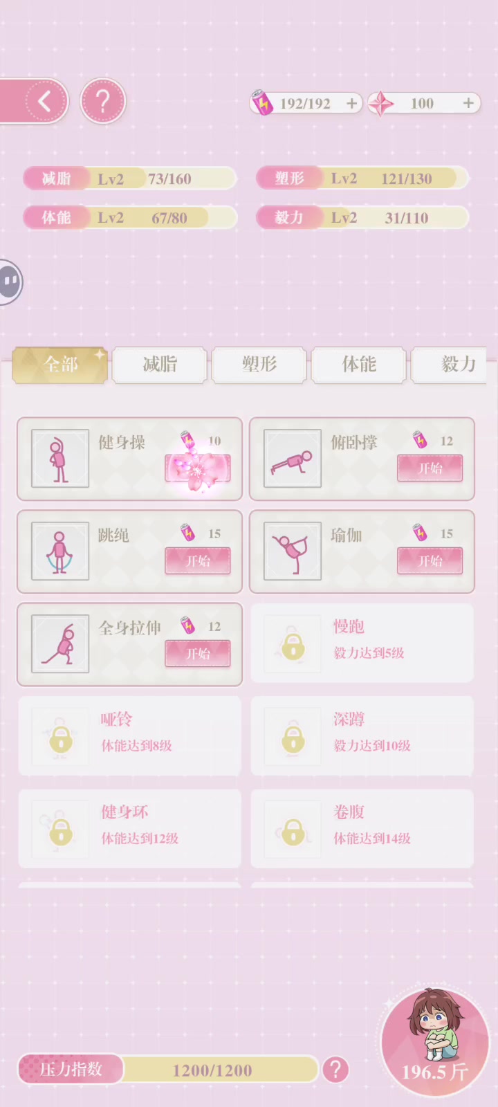 2-8这个条件都满足了就是不能解锁还有那个锻炼有几次做了光长压力值都不掉肉#200斤也要谈恋爱