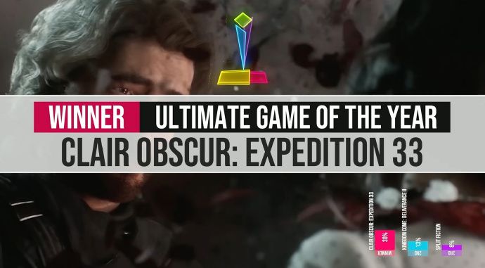 年度最佳游戏:《光与影:33号远征队》最佳游戏叙事:《光与影:33号远征队》最佳视觉设计:《光与影:33号远征队》最佳原声带:《光与影:33号远征队》年度工作室:Sandfall Interactive(《光与影:33号远征队》)最佳主角:Jennifer English(《光与影:33号远征队》玛埃尔)最佳配角:Ben Starr(《光与影:33号远征队》维尔索)年度PC游戏:《空