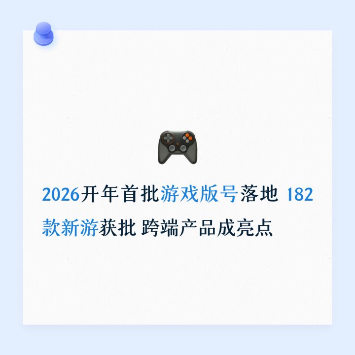 2026开年首批游戏版号落地 182款新游获批 跨端产品成亮点