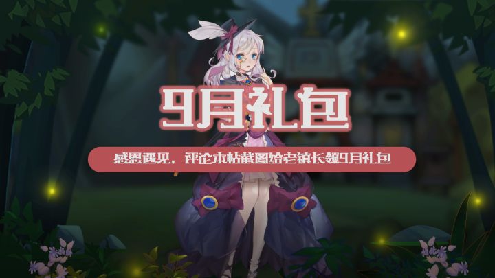 岁月的秋,既是轮回,也是新的开始。人生的秋,既是成熟,也是另一个路口。告别八月的漫山遍野,迎接九月的云卷云舒!亲爱的镇长们,祝你们9月快乐,收获多多!本帖旨在给Q群镇长们发福利,感谢各位镇长一直以来的支持。[9月礼包内容]9月常规福利礼包为:神圣药剂*30、传说宝箱*2、金币*88888请各位镇长在下方留言评论后截图,并至官方Q群963888367找到群主老镇长,截图私发给TA领取哦~此活