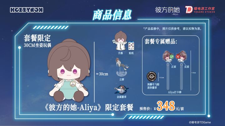 你的Aliya正在出击! 瞳电游工作室携手HOBBYWON,推出《彼方的她-Aliya》联名周边企划,今日正式上线预售,预售购买享受早鸟优惠~COSMOS可以关注HOBBYWON官方旗舰店/周边店(淘宝、天猫、小红书、抖音)查看更多产品信息和周边实拍PS:小小福利宣传:b站HOBBYWON商品博文转发动态+关注,参与抽奖:随机产品*3,每破300转增加随机产品*1,
