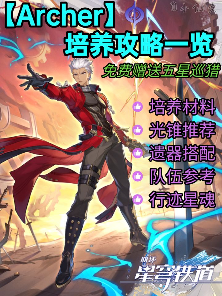 Archer详细攻略!白嫖强度够吗?!没花火怎么办?!寒鸦?!自动作战结果如何?!星铁3.4-Archer/光锥/遗器/技能/配队/星魂对比 #saber #崩坏星穹铁道 #崩坏星穹铁道创作者激励计划 #崩坏星穹铁道联动fate #Archer