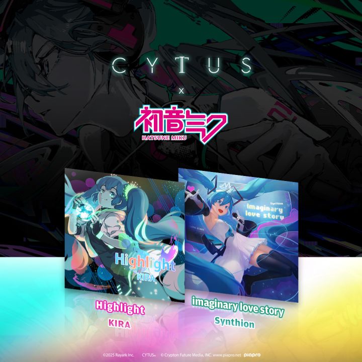Cytus II x 初音未来 二次合作即将开启! - 合作角色「Miku」复刻,追加2首全新收录乐曲: ➤ Highlight / KIRA ➤ Plaything / Mizu - 追加「Miku」专属曲包「Miku Extend 2025」,內含5首全新收录乐曲提供额外选购游玩: ➤ imaginary love story / Synthion ➤ Intergalactic Boun