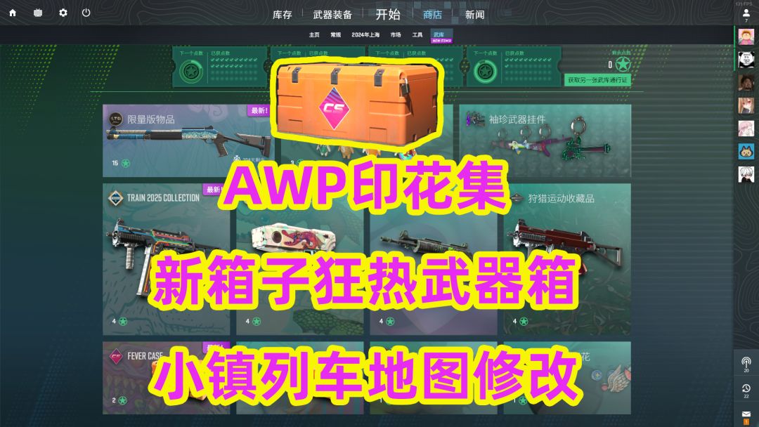 CS2更新,AWP印花集,新箱子狂热武器箱,小镇列车地图修改2025年