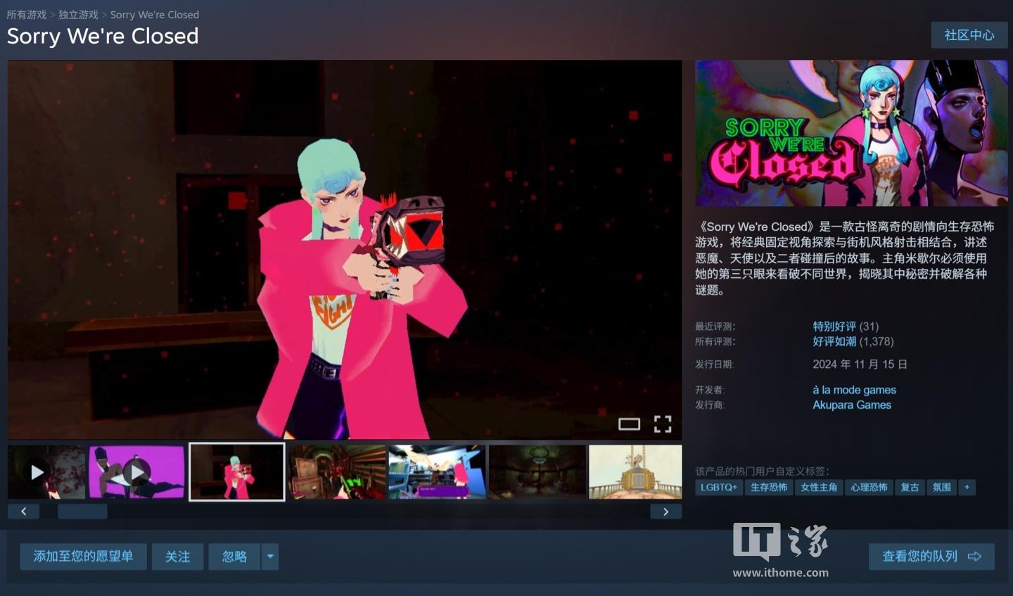 Epic圣诞连续喜加一翻车!12月22日送出的复古生存恐怖游戏《抱歉,我们打烊了》,直接因含LGBTQ元素引发玩家激烈争议,评论区彻底吵炸锅。这款Steam原价92元的游戏,主打女性主角视角,融合固定视角探索与街机射击玩法,剧情围绕恶魔与天使展开,核心标签明确标注“LGBTQ+”,画风更是极具西方猎奇感。免费领取消息一出,部分玩家直接炸了,吐槽画风劝退还带敏感元素,直言“领了污染游戏库”,甚至喊