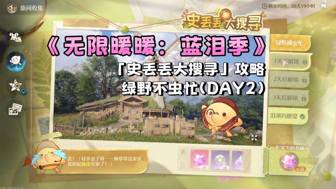 《无限暖暖:蓝泪季》的攻略来了! 今天是第二天,今天的主题是“绿野捕虫忙”。 希望今天的攻略可以帮助到大家!!! #无限暖暖蓝泪季 #无限暖暖蓝泪季攻略 #游戏种草计划 #无限暖暖 #Nikki #暖暖nikki #infinitynikki