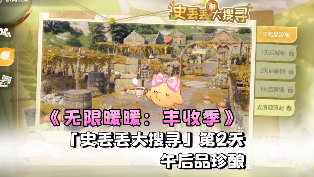 第二天的主题是“午后品珍酿”。具体位置就在酒庄这里。 希望这个攻略可以对大家有帮助! #无限暖暖丰收季 #无限暖暖丰收季攻略 #无限暖暖 #NIKKI #暖暖nikki #infinitynikki