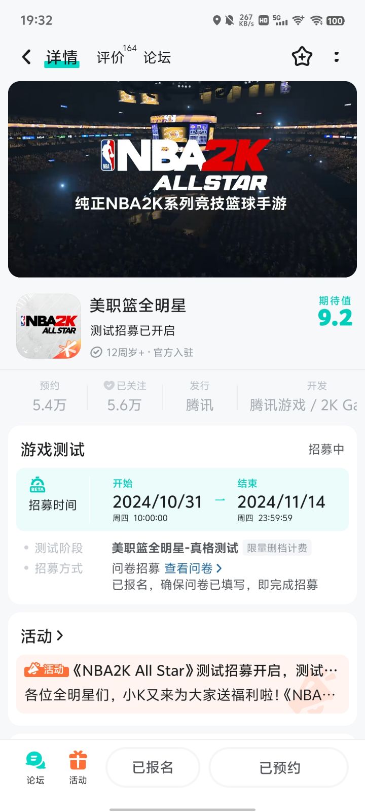 期待,希望能好好运营,我相信它一定会去被更多人看到并喜欢。总之很期待早日上线!#nba2k手游真格测试资格大放送