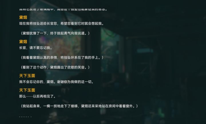 咱先来比几个其他比较火的不同游戏类型的手游,在黛烟活动开放时同期活动剧情里的主角待遇某国外14+媚宅游戏:除了活动剧情中期主角吃书变怂了外,结局不仅可以和对应尼姬上垒,更有甚者甚至再想第二胎了某国内12+群像类游戏:大家一起拍了个电影,破了个案,活动结束后剧情彩蛋里高好感度角色老远的看到你甚至会向你招手某国内16+完全看不懂啥定位的游戏:前作可以誓约的角色,分别10年后再相遇不上车再过10年