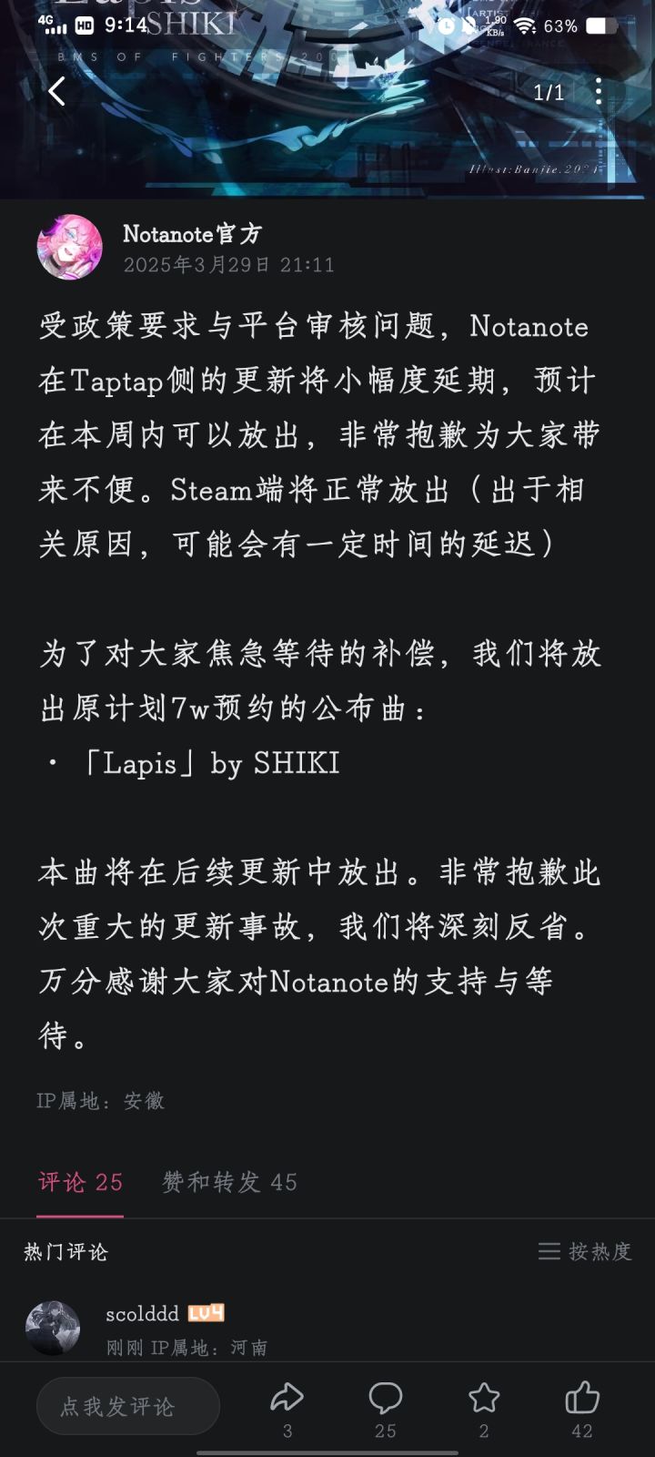 好耶!更新啦!Notanote还是挺有水平的,很好听的曲子 可惜打得不太行,和自身底力还有录屏都有关系,不过也没关系啦,对高分也没啥追求 最后,新年快乐[表情_开心] #notanoteTapTap测试版 #notanote #时契