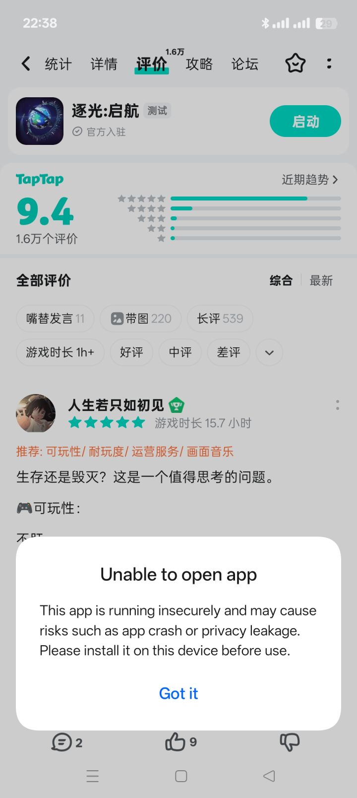 安装过几百款taptap里游戏都从没遇到过这种情况。这个游戏我还是第二次下载,第一次是一年前,安装时显示该游戏有病毒。这第二次显示它是高危app。我在taptap下载过至少上百次游戏,一次这种情况都没遇到过,光这一个游戏这情况却出现两次 #怎么玩不了 #继承了一座戏园子 #种田游戏 #种田 #taptap #oppo #手机游戏