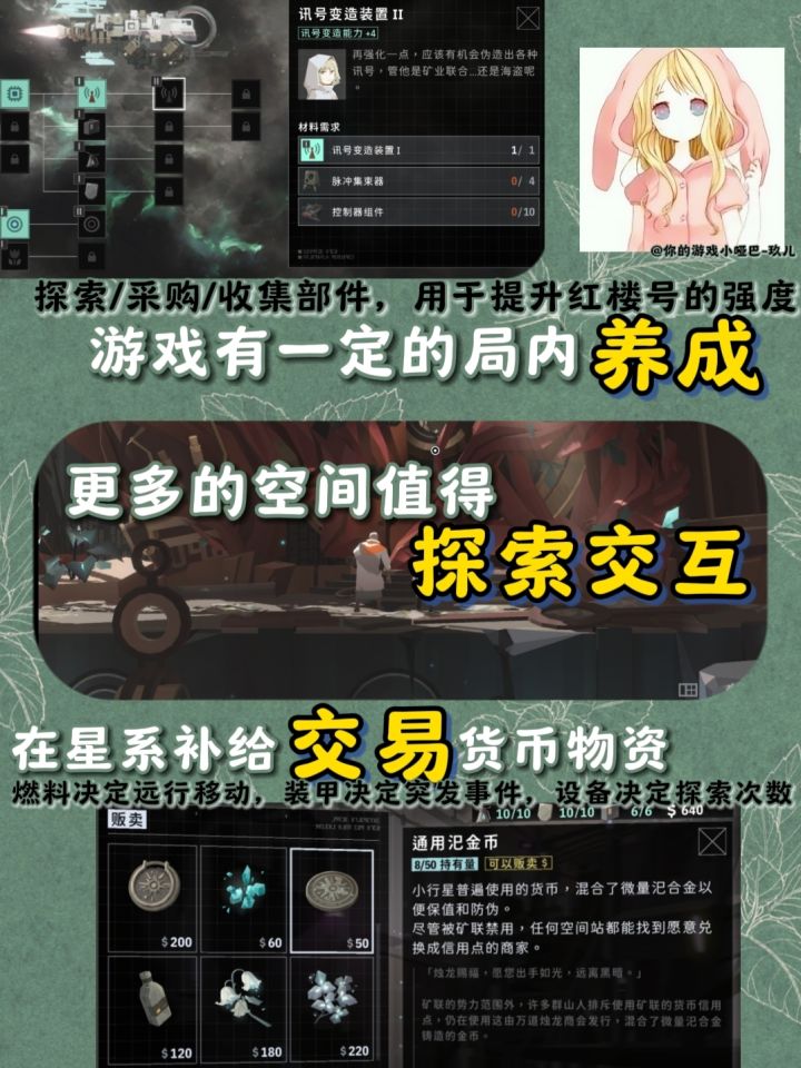 ❀游戏:《龙脉常歌》❀大小:《1.45g》❀定位:一款星际探索题材的剧情rpg❀——❀❀【本作的对抗:骰子】在本作《龙脉常歌》中、暂以前期体验来算的话,其实对抗场景并不多。只有在远行的阶段(尤其是被悬赏后),才会开始出现各种突发事件。而由于玩家一行人所在「红楼号」并非战斗性质,以至于只能赌运气来逃脱,只要投出的骰子比目标大即可,而且只要升级部件,也可以提升“讯号变造能力”,能让下限增