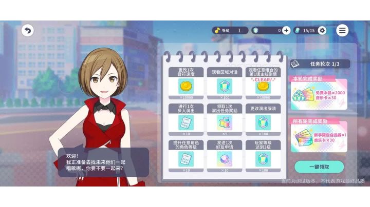 以下为详细指南1.更改一次音符速度2.查看区域对话3.观看任意组合的第一话主线剧情(此任务在做新手任务时已完成)4.进行1次多人演出(可顺带完成任务8.发送一次好友申请)5.领取1次任务演出奖励6.更改演出服装7.提升任意角色的角色等级8.发送一次好友申请(可在任务4做的时候完成)7445159345878211362获取玩家ID9.玩家等级到达3级(打歌就会升级)求求