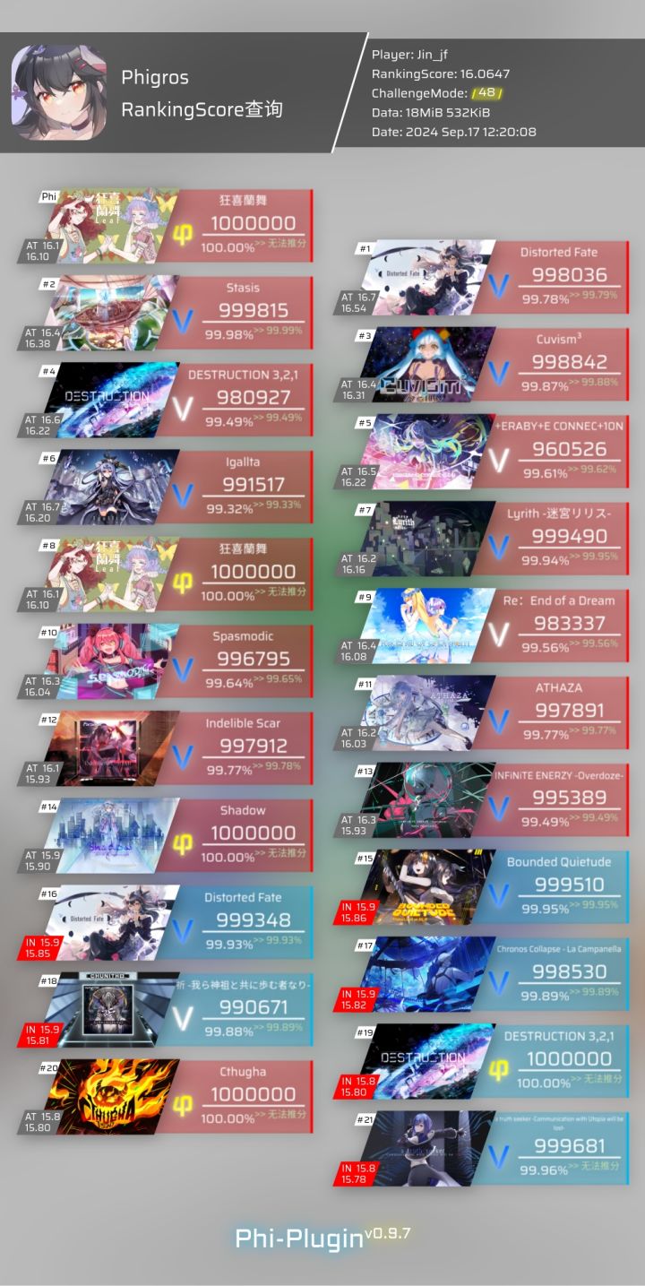 纪念帖:Phigros突破15.60(个人旧15.50)