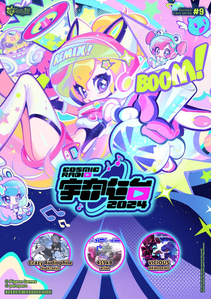 律动轨迹的第九个歌曲系列:“宇宙电台2024合作活动”即将开始!「Crazy Audiophile」 by Supa7onyz「419kB」 by ariiol「VICIOUS」 by MEMODEMO3首歌曲将于3月28日更新,敬请期待! #rizline #律动轨迹 #鸽游 #pigeongames
