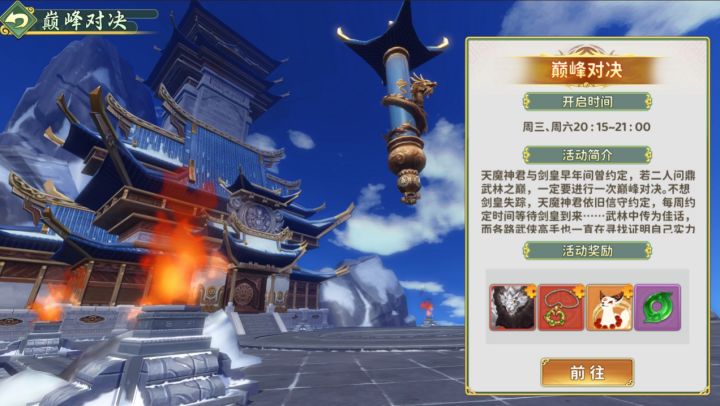 少侠们好呀~你们最爱凑热闹(bushi)最懂江湖时讯的香香来啦!要说这江湖夜生活最刺激的部分,那必定是夜战了白天锄强扶弱,夜晚快意恩仇!今天香香要讲的,就是《热血江湖:归来》里两大晚间PVP活动——巅峰对决&名剑大会 【巅峰对决:独狼的战场】开启时间:每周三、周六20:15-21:00参与方式:活动期间内报名即可参加活动奖励:活动中名列前茅的玩家会获得红色首饰碎片、白虎真灵、热血飞