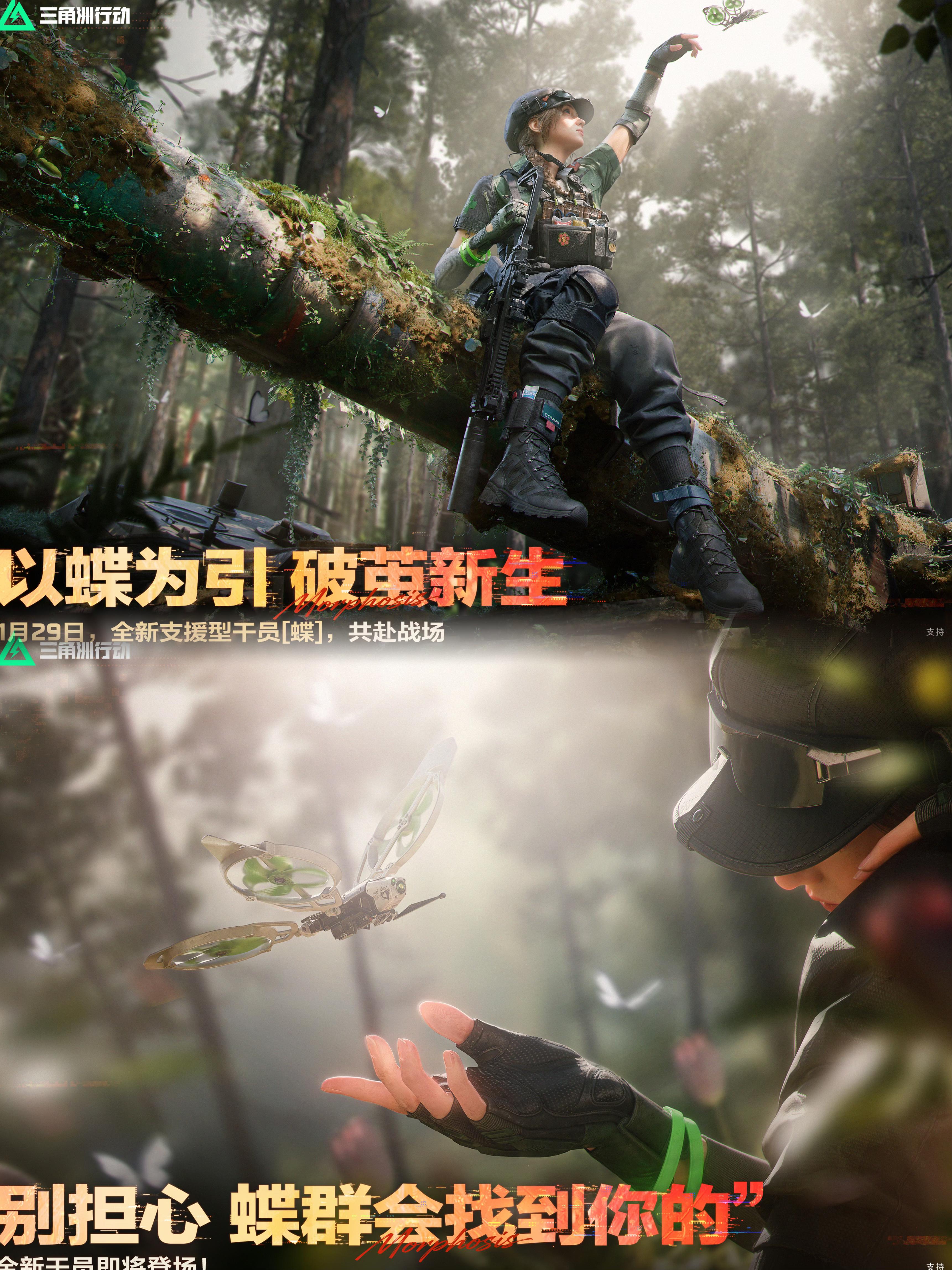 官方1.11日官宣!S8赛季新女干员「蝶」定档 1 月 29 日上线,定位支援型干员,这波期待值拉满~#今天游戏圈发生了啥 #三角洲行动 #资讯评论员 “蝶群会找到你”这句话真的好有安全感!是不是意味着以后撤离路上不用再怕孤单掉血了?远程救援?已经开始期待蝶的技能特效了,想象一下漫天蝶群飞过战场的画面,又美又燃谁能拒绝!“破茧新生”更是直接拉满期待值!是新赛季的主题没错了~就像我们在三角洲的每