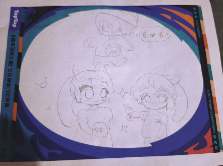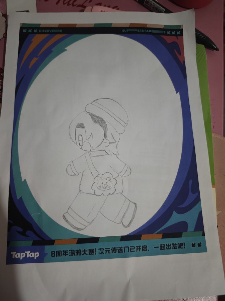 借鉴了好几张图,这个设定就是未名市的左然在做选择题,是想要物质上的快乐还是精神上的快乐。个人追求吧。答案当然是精神上的,因为左然本身就是游戏里面的角色,他就代表了我想要精神上的快乐。嗒啦啦的图片都很好看嘞。丙烯马克笔还有水彩笔都不在手上,只能简单画灰黑色。但是感觉还是能看出来是嗒啦啦吧 哈哈。八周年喽,taptap还会有很多很多个周年庆!#TapTap八周年#Tap涂鸦大赛