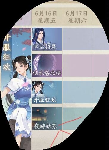 首先我们来谈谈有关于距离开哪些活动的天数,大家可以打开游戏界面的左上角有活动日历里面可以看到几号到几号有什么活动! 其他活动各种屯法以及注意事项 一:幸运招募活动:此活动为250抽卡卷为一轮,大家平时可以积攒点抽卡卷,如果大家这期的抽卡卷只有300多票建议大家先抽一轮也就是250票,其余的几十票及时止损继续屯着,有可能下一期的抽卡卷可以让你完成两轮。 二:姑苏夜游活动:这个活动是为了屯白票的,七