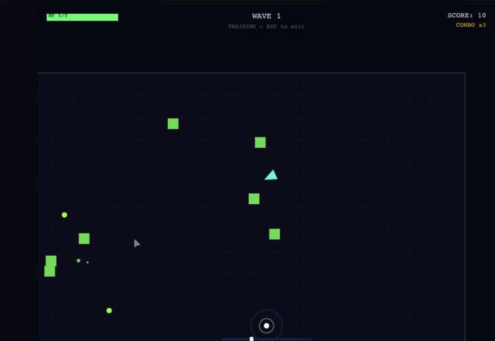 还没拿到码,用的其他vibe coding工具核心玩法是:1. 吸血鬼like的top-down 2D射击清怪2. 角色射击与移动绑定,移动只能靠射击后坐力3. 节奏与行动绑定,敌人按节奏行动,主角也按节奏限制射击频次和提供射击增益(perfect时机是散弹,非perfect是单发)验证过程:1. 先按完整设想,做最简的玩法构建,包含所有游戏要素,但不细究体验2. 避免美术上的任何投
