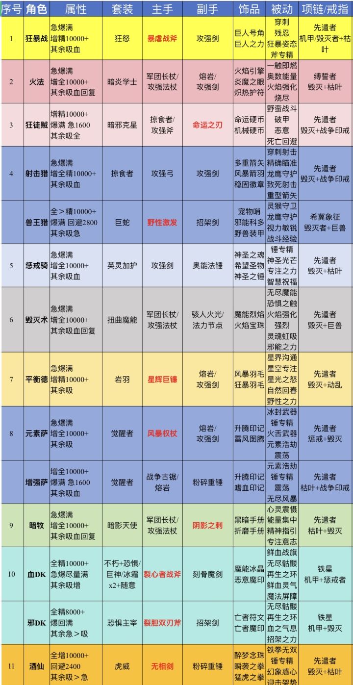 区服:S001邀请码:GXOTLSJYKP昵称:子非语7月入坑萌新,熬鹰半年博采众长,欢迎各路大佬指正补充共同探讨,争取一起覆盖全职业整理齐全,帮助更多人少走弯路(345懒了一个版本)希望和谐交流,毕竟单机游戏,各自图个乐呵 ------------可爱的分割线-----------(一)版本职业:(起码完成表内前置条件)专精互通这个玩法更新真的赞,可玩性大大提高!PS:资源不够未