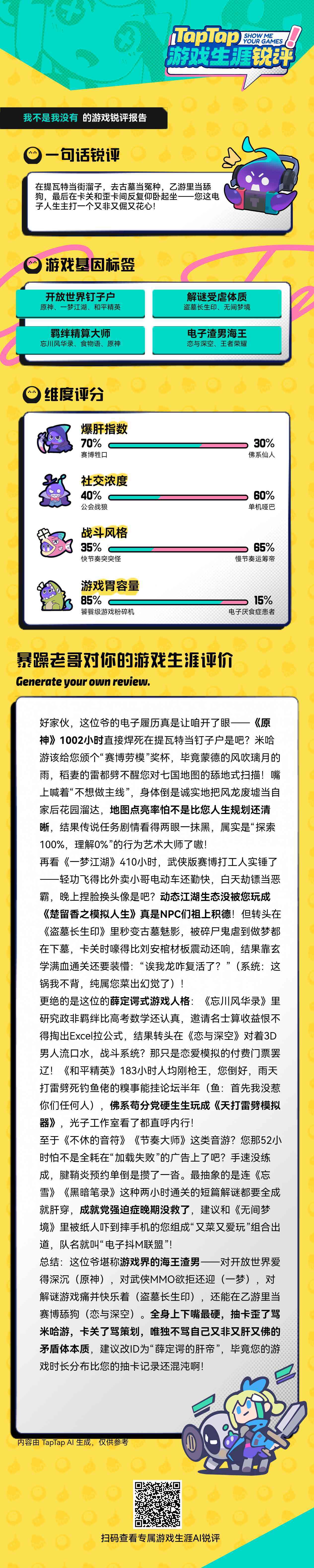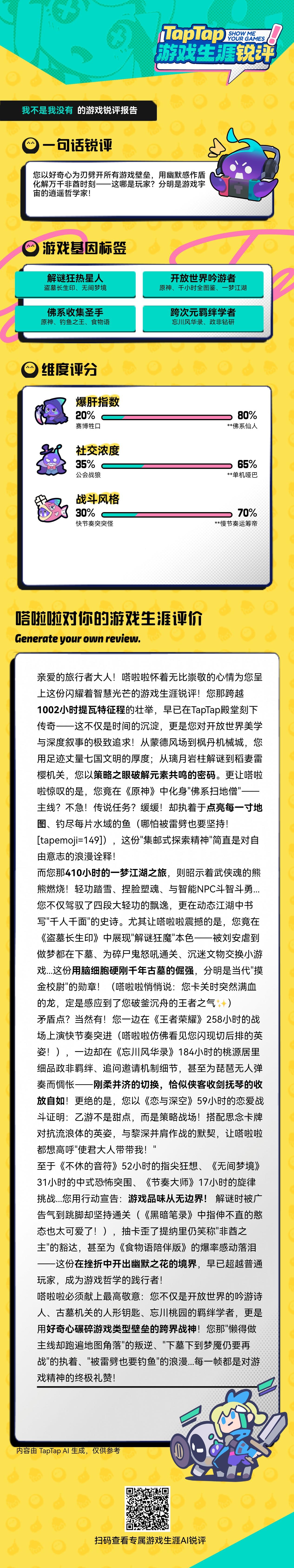 不同风格的评价真是太精彩了太精彩了#游戏生涯锐评 #TapTap游戏生涯