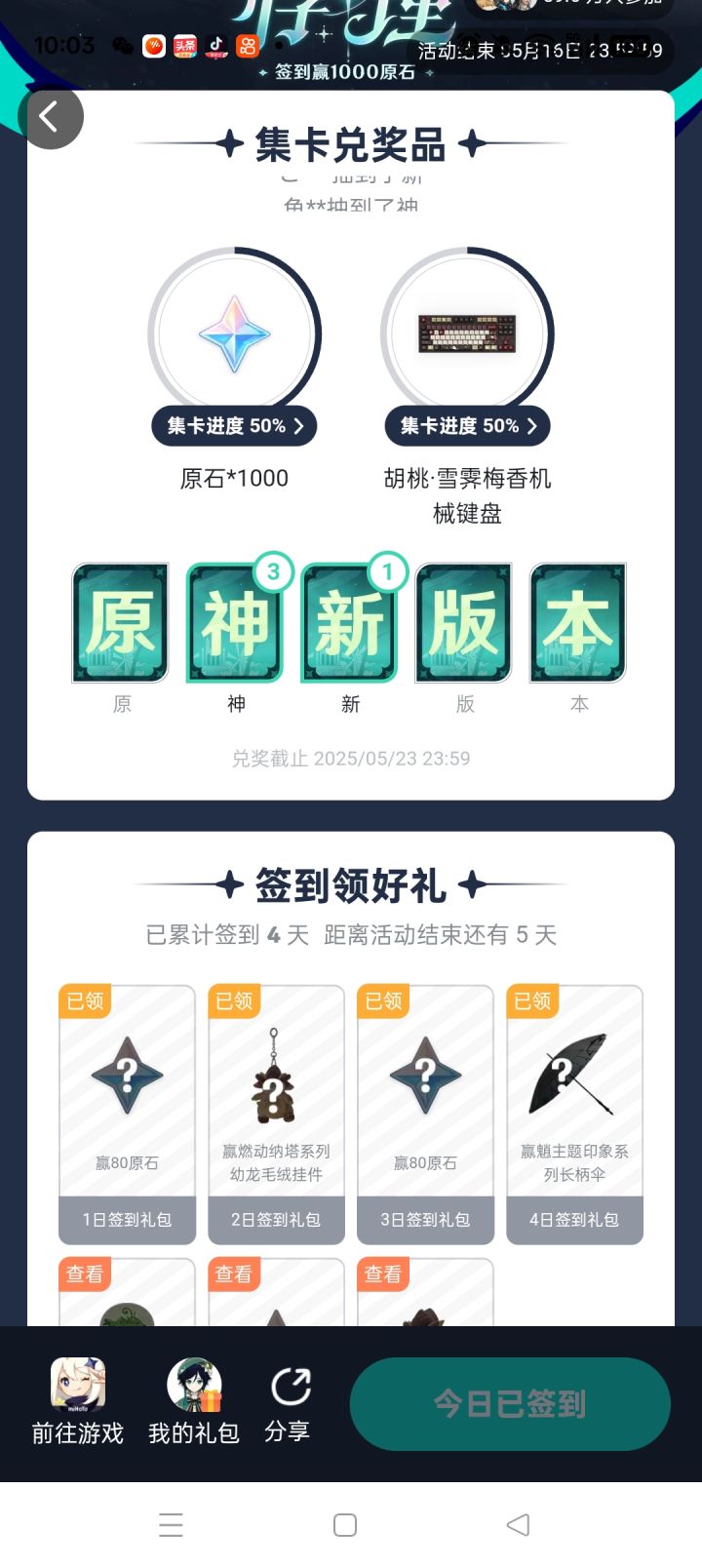 这活动应该只要十天不断签,基本上大多数参与人都能获得50💵吧。这种活动都不公示概率的,所谓“保底”应该还是能领的。#原神荣花与炎日之途 #原神 #TapTap签到