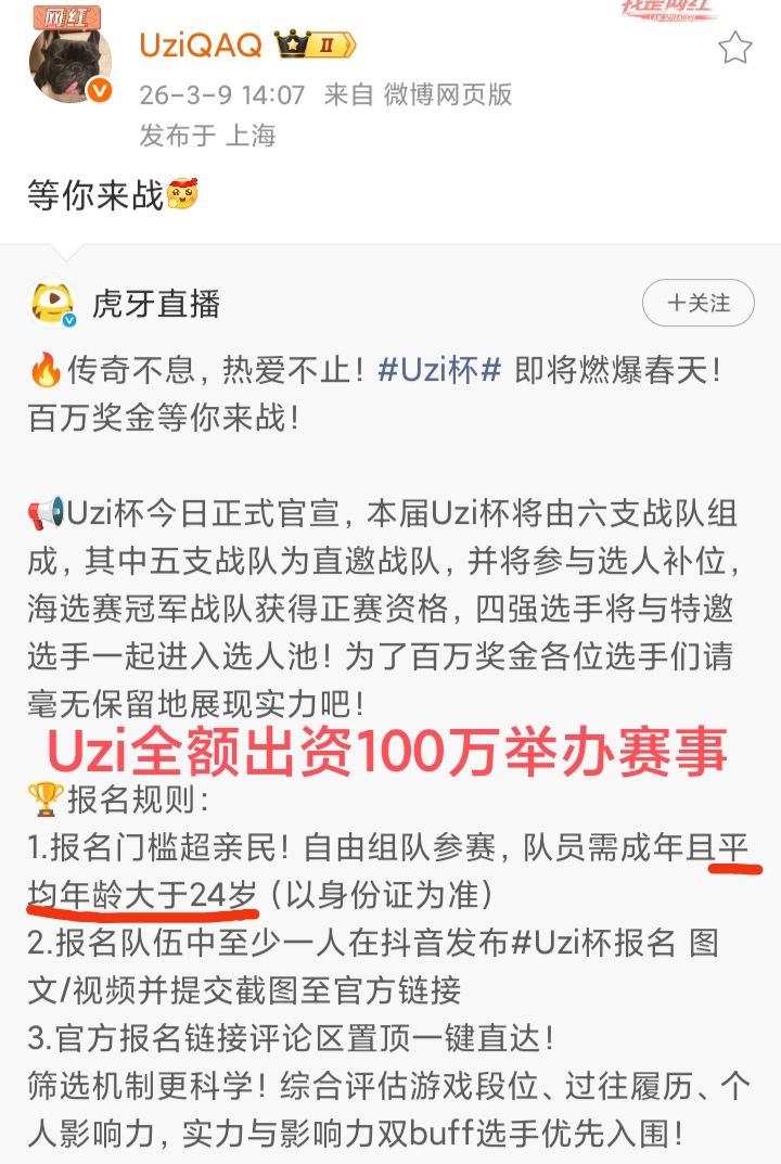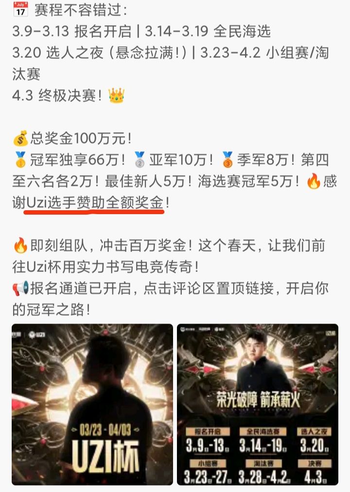 大气呀❗Uzi豪掷100万举办LOL赛事🎉🎉🎉
