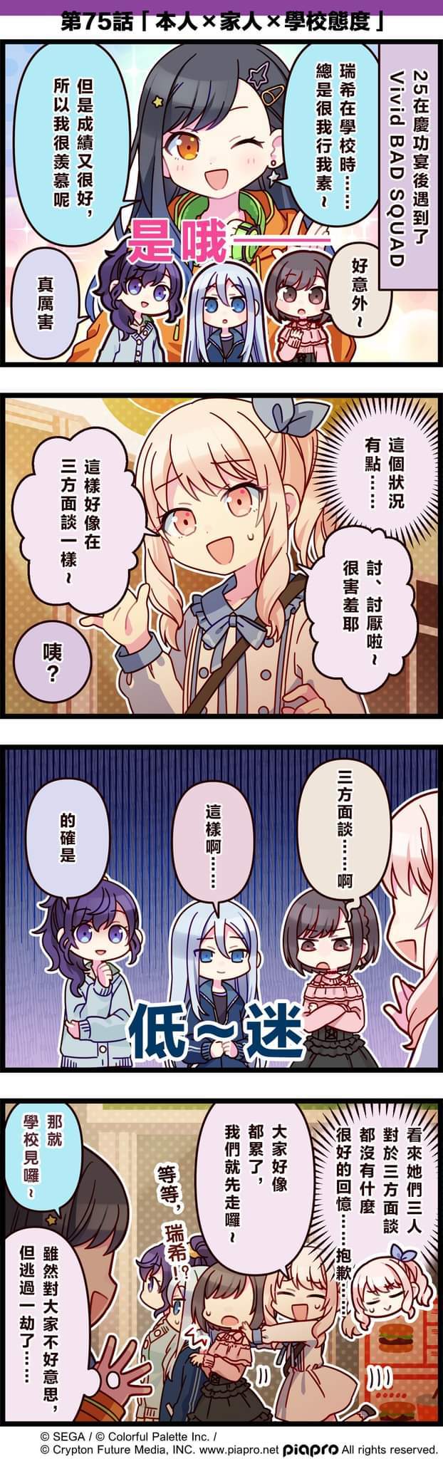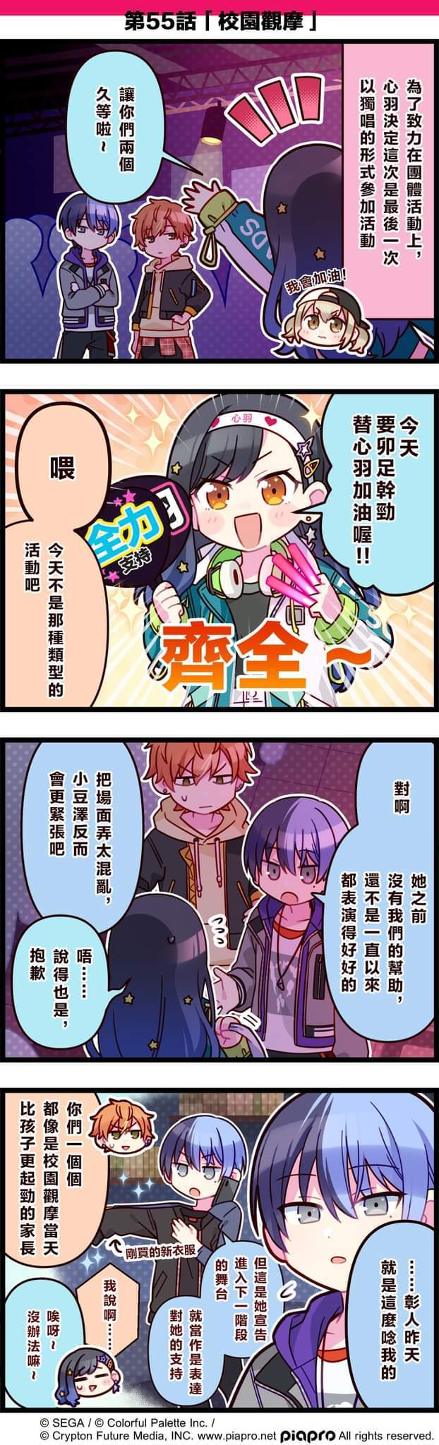 【「世界」劇場 四格漫畫】 尊敬的各位居民: 今日是關於[Vivid BAD SQUAD]的小故事~ 第55話「校園觀摩」 #pjsk#世界计划#VBS