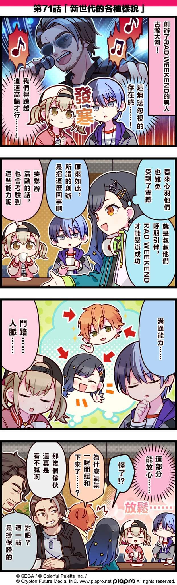 【「世界」劇場 四格漫畫】 尊敬的各位居民: 今日是關於[Vivid BAD SQUAD]的小故事~ 第71話「新世代的各種樣貌」#pjsk#世界计划#VBS