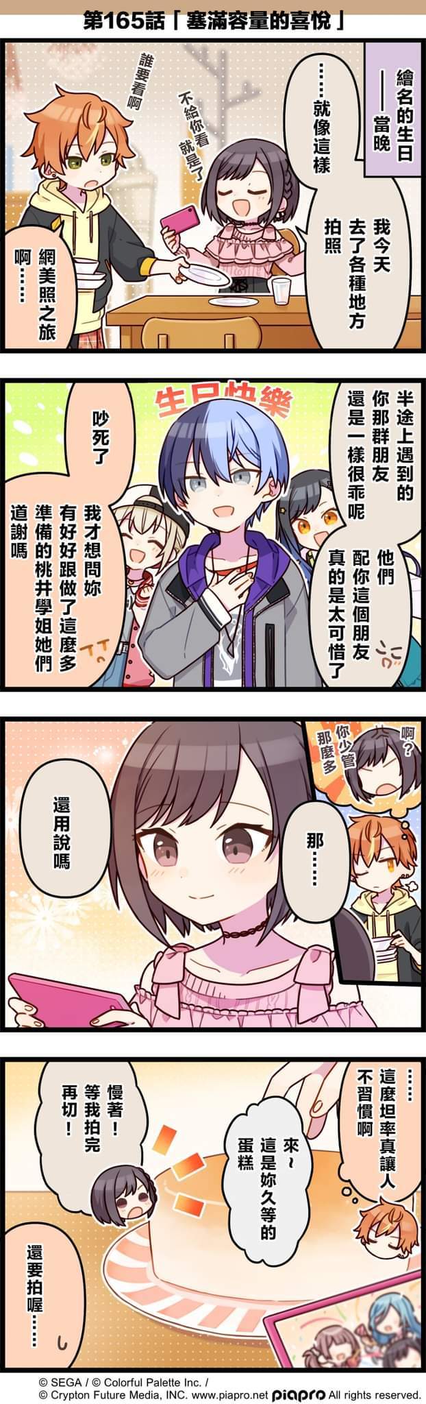 【「世界」劇場 四格漫畫】 尊敬的各位居民:今天4/30是 25點,Nightcord見。成員「東雲繪名」的生日!讓我們一起來慶祝東雲繪名的生日吧~來看看關於東雲繪名和東雲彰人的小故事吧~第165話「塞滿容量的喜悅」🎉#pjsk #世界计划 #东云绘名 #VBS