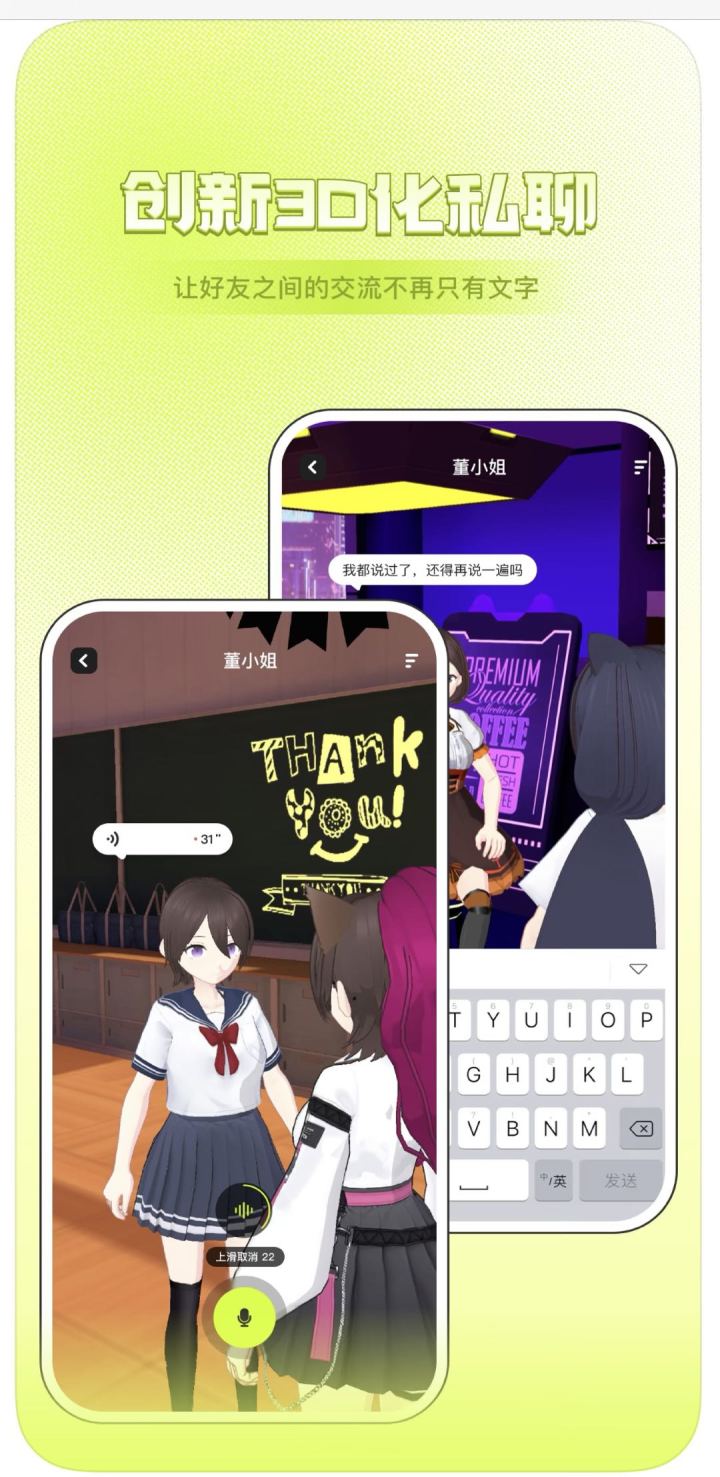 ZRole大舞台,社恐你就来!大家好,我们是ZRole,在这里你可以:轻松获得你的二次元3D形象,千种参数自由捏人独创3D化私聊页面,好友间的交流不仅只是文字3D好友列表,让你时刻看到好友的状态目前已在各大应用商店上架!直接搜索ZRole即可直达~新版本还有拍照、好友合拍、自定义好友关系、丰富饰品等,快来试试~~#游戏安利#ZRole#捏脸