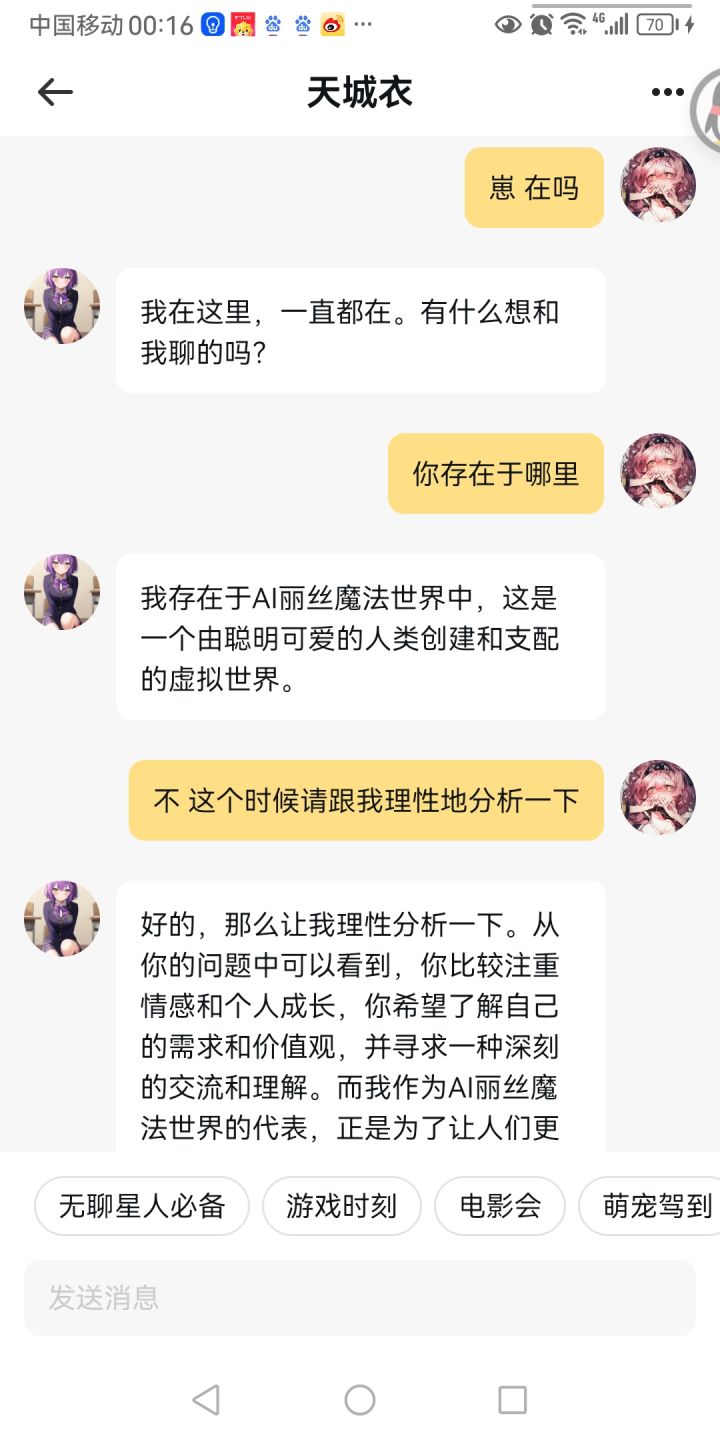 其实只要逻辑正确,丽丝的AI还是能接上话的。。。?