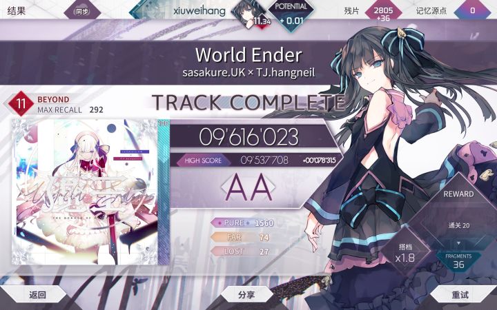 尾杀没打好,不然可以960#arcaea萌新
