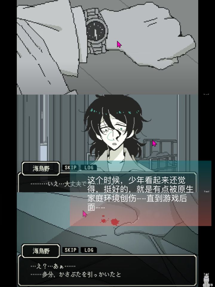🩵海鳥野ガクの精神鑑定録🩵novelgame💛克系/视觉小说/剧情/多结局/像素🩵游戏背景精神科医生道岛(主角)被安排负责一位住院病人:刺伤母亲的男孩他出现了奇怪的幻听……你能逃离神话生物的魔爪并生存下来吗……!? ?🩵游戏特点🩵一款带有克苏鲁神话元素的ADV游戏:以克苏鲁神话为背景的“恐怖游戏”- 血迹🩸预警!例如血溅在屏幕上,并且屏幕轻微闪烁之类的镜头(比如刚开始游戏