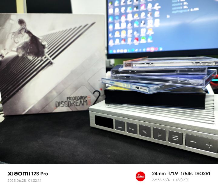 事先声明:以下所写内容均为本人试听使用后的真实感受,不喜勿喷,望各位下手轻点hey!各位好啊!这次又收到水月雨巡回寄来的梦想碟机2u一台,在这里非常感谢水月雨的大力支持!来看外观,这次碟机2u采用的是全铝合金的金属外壳,拿在手上的手感比碟机2要重的多,感觉像同时拿了三台手机在手上一样(题外话:我觉得这已经不太算便携CD机了,毕竟重了很多,碟机2u更适合摆在家里)。基本功能和碟机2一模一样,但碟