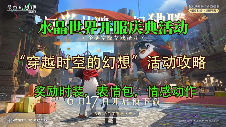 各位冒险者们好呀!水晶世界在今天正式公测,游戏内也同步开启了开服庆典活动“穿越时空的幻想”,讲述了意外穿越到艾欧泽亚大陆的企鹅打扮的神秘人发生的一系列故事,完成活动能够领取情感动作,头像框等丰富奖励,让我们来看看如何参与吧!一:参与条件完成十级主线任务《海之都与森之都》,即可解锁活动页面参与活动。主线任务等级可以点击左上角感叹号查看。二:活动流程与奖励点击右上角活动图标即可进入活动页面,页