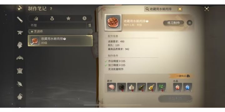 1-40开笔记/理符/职业任务升级40级先做职业任务,开完收藏品的笔记就开始搓49级别的肉排,材料很便宜,厨师的三消玩法简单又有趣(建议装备40hq+2魔晶石+魔匠药剂+食物),轻松拉满收藏价值。另外,在升级其他生产职业时,搓的装备先解锁外观再扔/交筹备,达到一定数量送的金币几乎可以cover练级过程中买材料花的钱(这点和端游里幻化柜的原理不同,手游是解锁衣服多多益善)#最终幻想14水晶世界