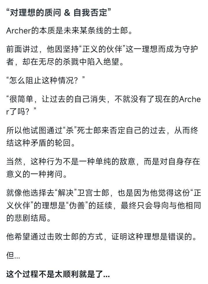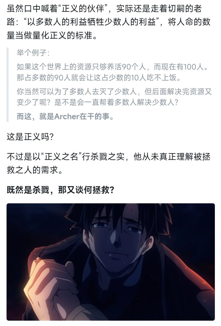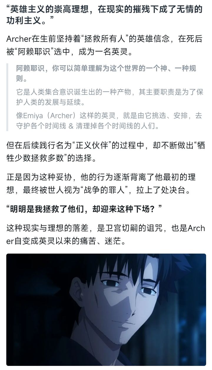 #gal杂谈 本文内容偏向精简,需要对《命运之夜》游戏&动漫有个大概的了解,要不然很容易搞不懂我在讲什么。这期呢,就借着言峰绮礼这个角色,来同大家聊聊“虚无主义”。先讲讲言峰绮礼为什么追求愉悦:言峰绮礼,这位角色的“异常”在于灵魂的先天缺陷。先是情感的倒错:他无法从常人的幸福中获取愉悦(存在的价值),却能在他人的痛苦与死亡中感受极致快感。就像妻子身患绝症时,他唯一的情感波动竟是“遗憾未